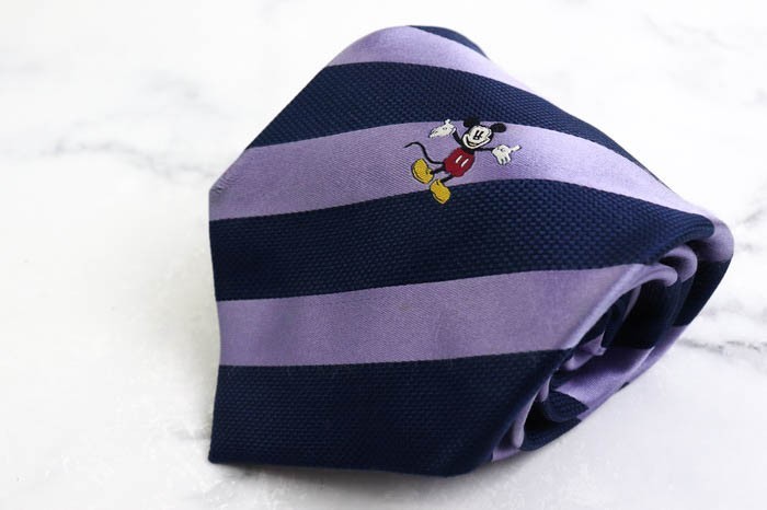 - ディズニー シルク ミッキーマウス TDL ストライプ柄 ブランド ネクタイ メンズ ネイビー Disney