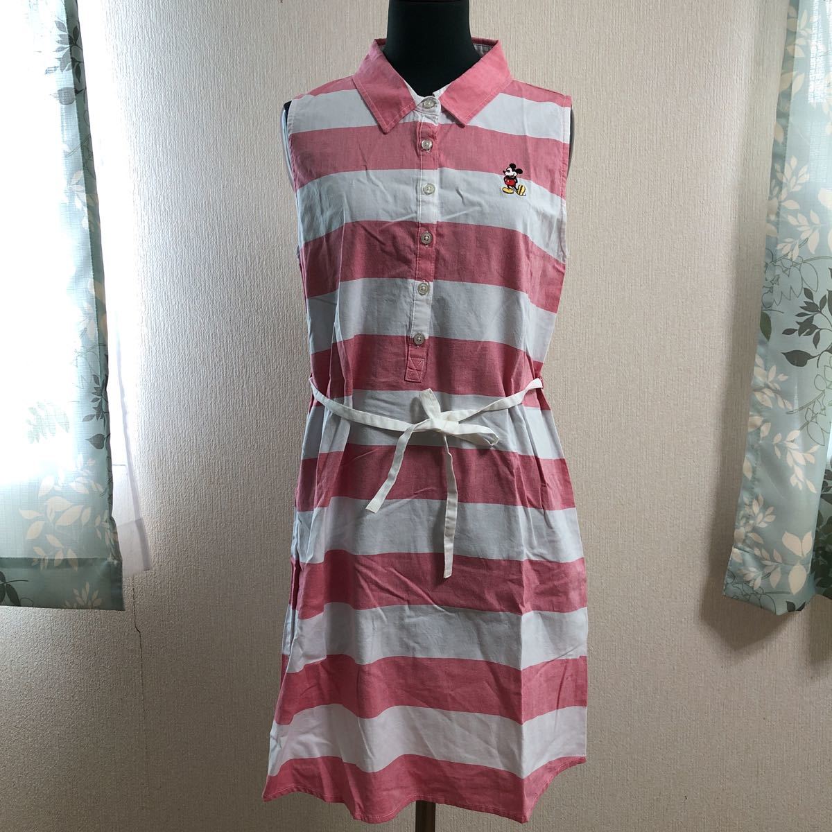 - ミッキーマウス★ボーダー柄 ノースリープ シャツチュニック LLサイズ