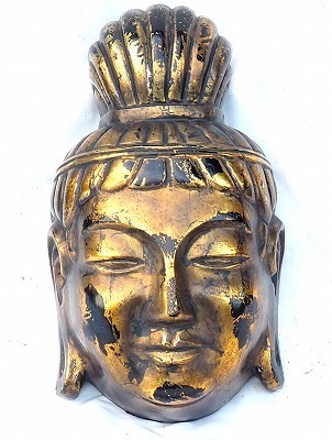 - 乾漆行道面 夢違観音 金工芸品 時代物 お面 壁掛け 置物