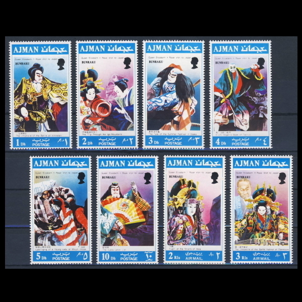 - ■アジュマーン(アラブ首長国)切手 1971年 エリザベス女王訪日記念 / 日本文楽 8種完
