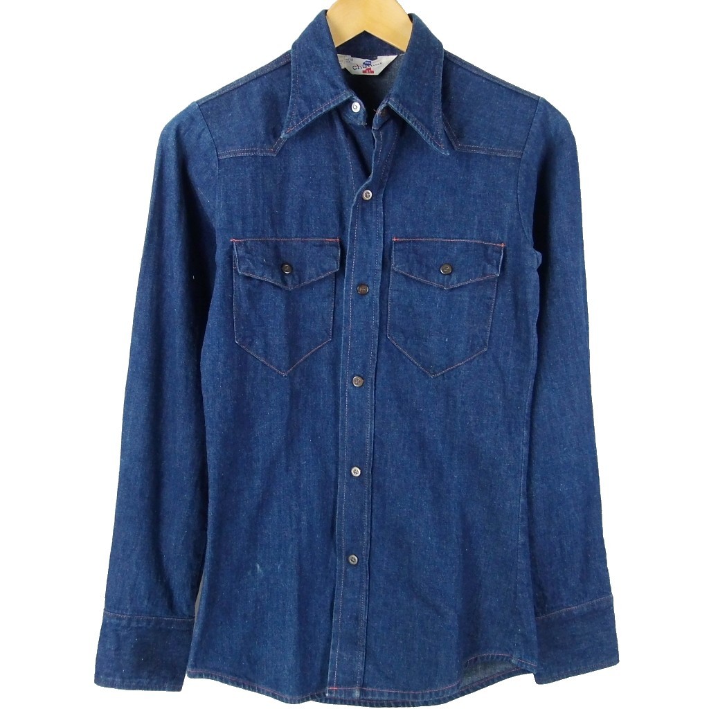 - ■1st chamar 70s ビンテージ 古着 / MADE IN USA アメリカ製 / インディゴ ウエスタン デニムシャツ / スリムフィット トップス
