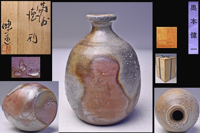 - 奥本健一 ★ 備前 徳利 ★ 共箱 共布 栞 ★ 景色の良い逸品 ★ 酒器 ★