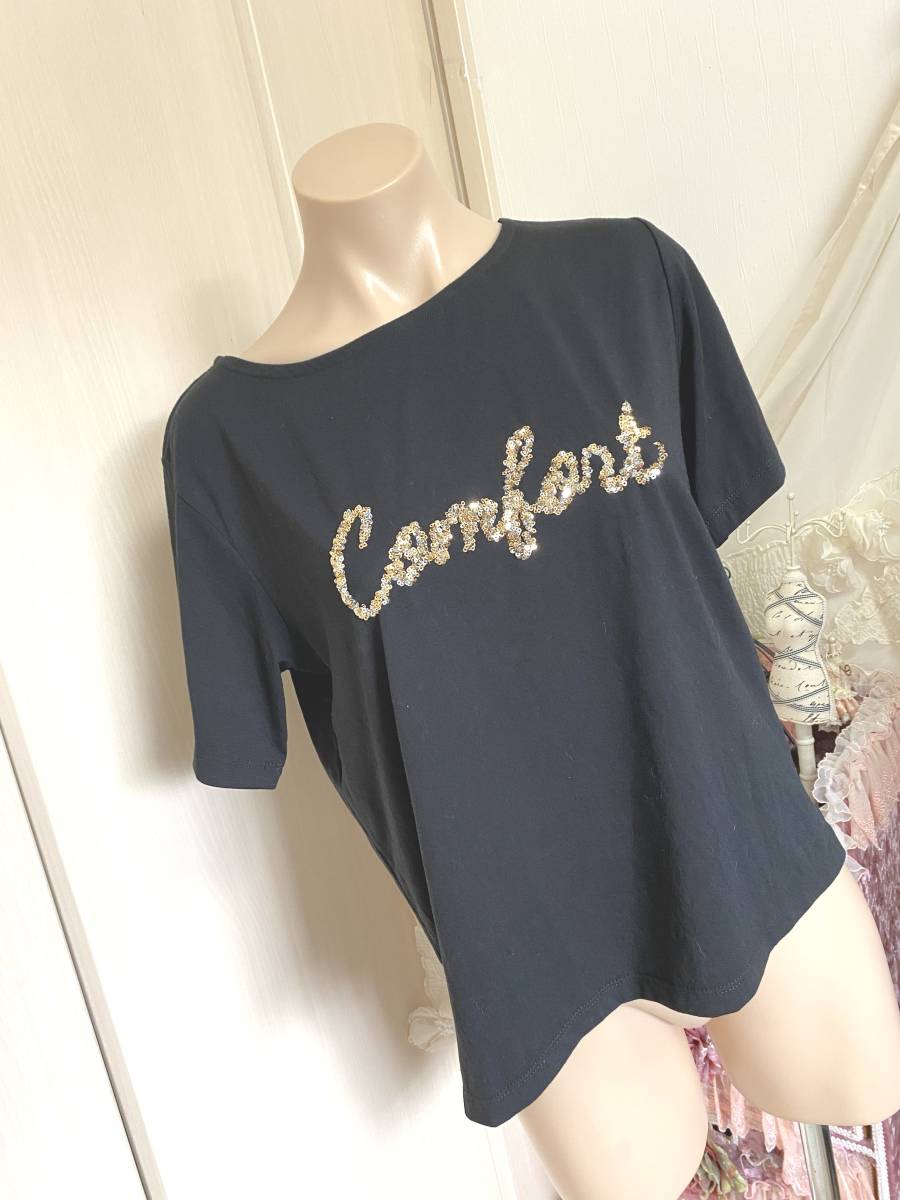 - レディスLサイズ:ESPRITMUR◆スパンコール飾り*半袖Tシャツ:黒
