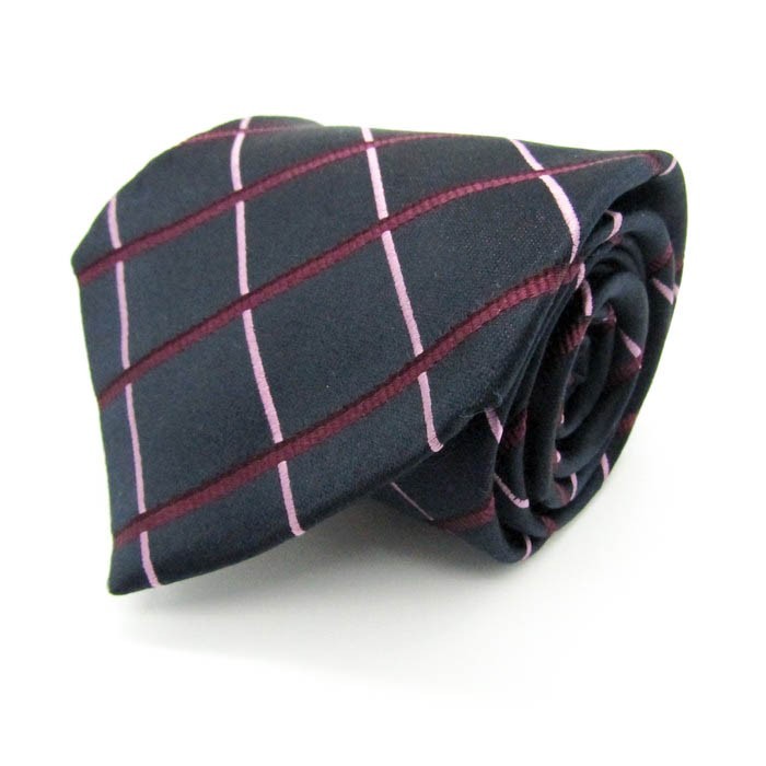 > スタジオナコラ シルク ストライプ柄 ライン柄 伊製生地 格子柄 イタリア製 ブランド ネクタイ メンズ ブラック 良品 STUDIO NACOLA