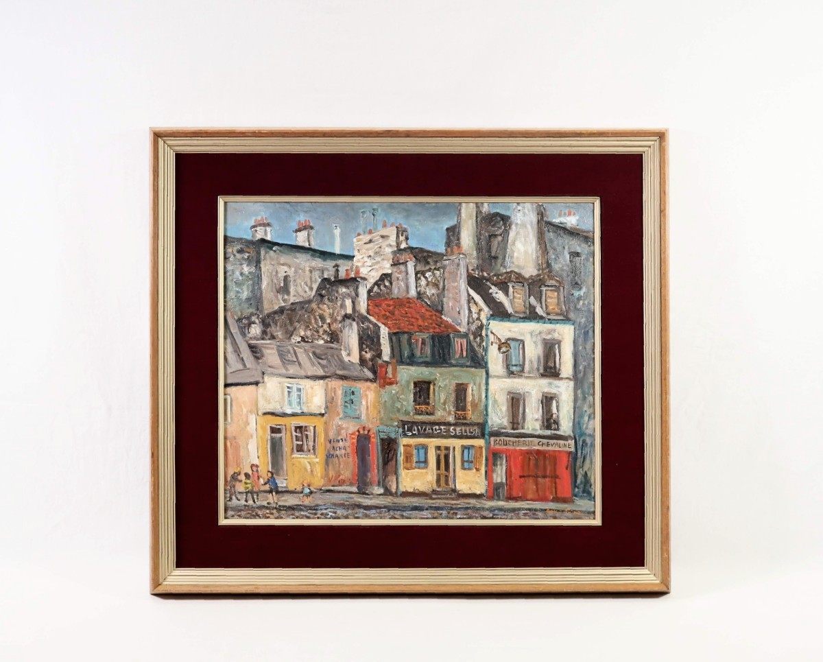 > 真作 青木四郎 1965年油彩「ベルベイユ」画寸 F10 神奈川県出身 野口謙三に師事 滞仏作家 暖かな色合い風情豊かなパリの街並みを描く 7628