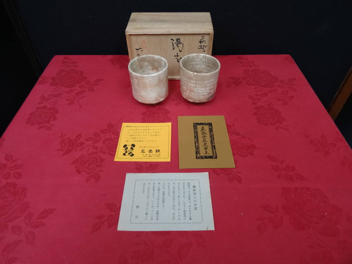 - 未使用 ヒビあります 萩焼 湯呑 大和雲谷 直径7cm 高さ8㎝ 桐箱 ekt1-95
