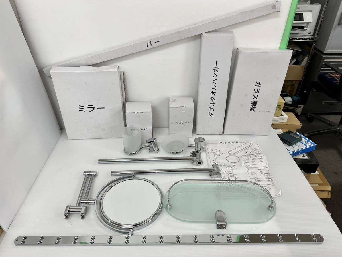 - (JT2306)風呂場用アクセサリー(ミラー・ガラス棚板・ダブルタオルハンガー・ソープデッシュ&ホルダー・歯ブラシ立て&ホルダー・バー)