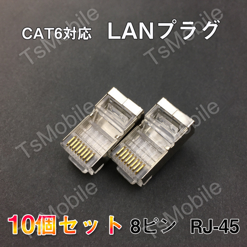 - LANプラグ 10個セット 透明 RJ45 金属カバー アダプタ CAT6A対応 8Pin 1Gps対応 ギガ光回線対応 超高速通信 LANケーブル 自作工具 DIY