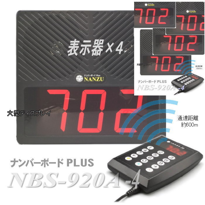 - 病院や店内の受付順番表示器4個セットワイヤレスシステム NBS-920A-4 受付順番表示器 表示器4台のセット