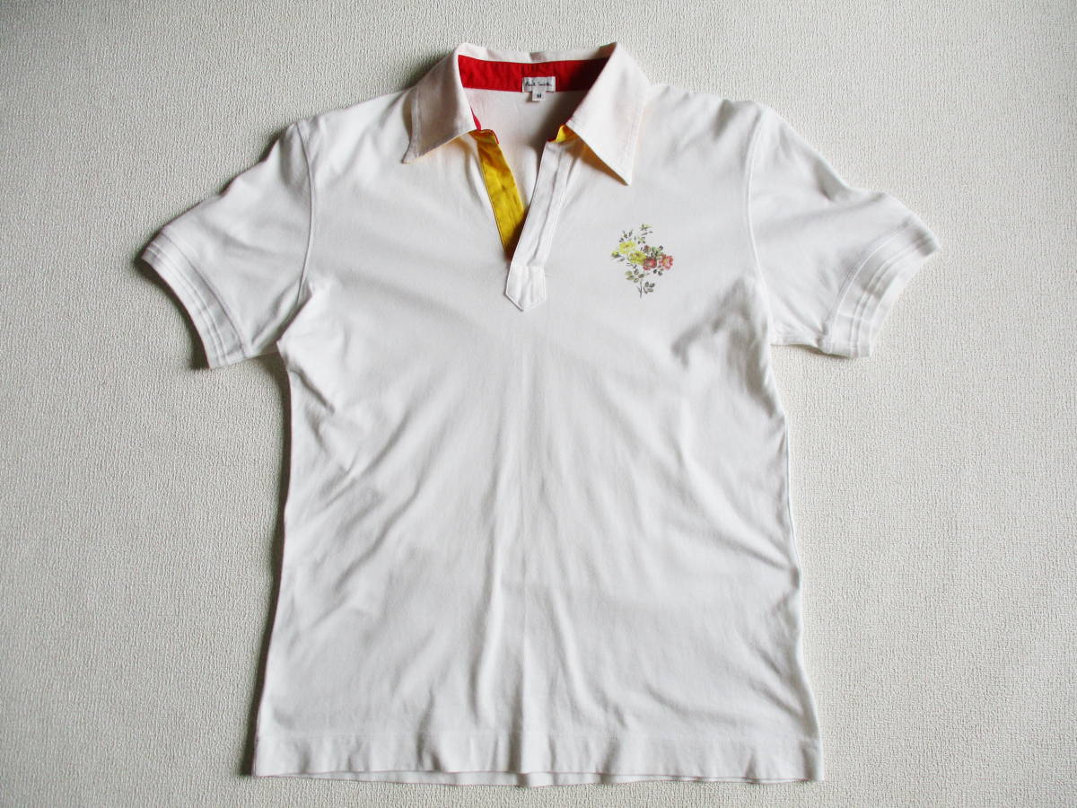 - 胸花プリント★ M ポールスミス★ 半袖スキッパーポロシャツ★ 日本製 白 ホワイト フラワー