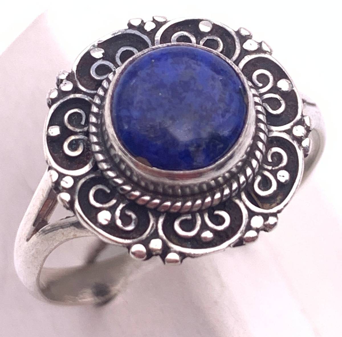 - 天然石ラピスラズリ アンティーク風 silver925リング☆14.5号