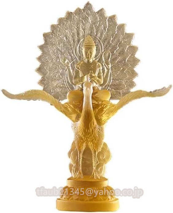 - 【ケーリーフショップ】孔雀明王 仏像 孔雀仏母 孔雀王母菩薩 置物 瑠璃材質守り本尊 除災 祈る 厄除け高さ13.5CM