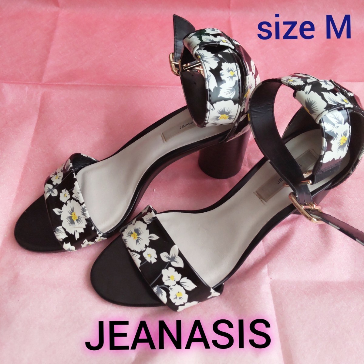 > JEANASIS ジーナシス サンダル レディース 花柄 黒 ベルト付 M かわいい 23cm 23.5cm ヒール5cm以上 ヒールパンプス 靴