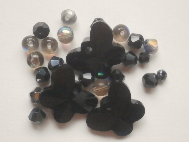 - ガラスビーズ★蝶々★1つ穴★ブラック系★A
