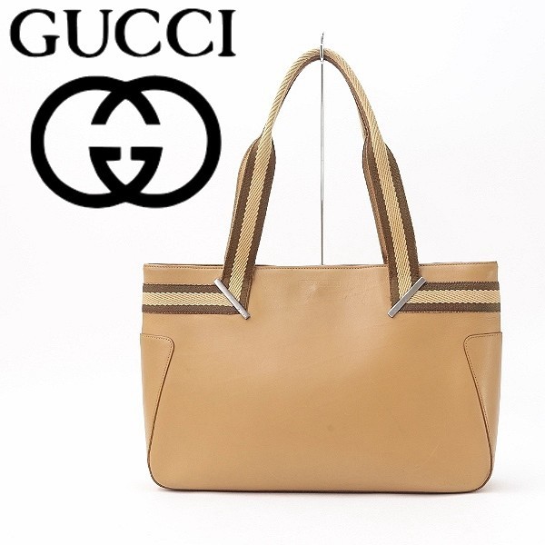 - ◆GUCCI グッチ 73983 レザー×キャンバス 肩掛け ショルダー トート バッグ ベージュ