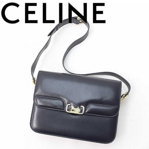 > ヴィンテージ◆CELINE オールド セリーヌ レザー ホースキャリッジ 馬車金具 肩掛け ショルダー バッグ ネイビー