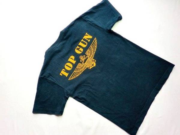 - $ 美品 $ 激レア 古着■ TOPGUN ■ トップガン ■ プリント柄 丸首 ■ 半袖 Tシャツ■ メンズ S ■ 綿100%■ 濃紺×イエロー系■ 送料無料