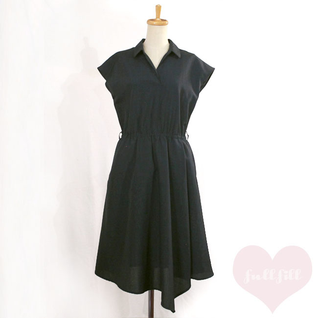 > ワンピース 古着 チャコール 変形 無地 モード 昭和 レトロ モノトーン フレンチスリーブ シンプル レディース古着 used グレー シック