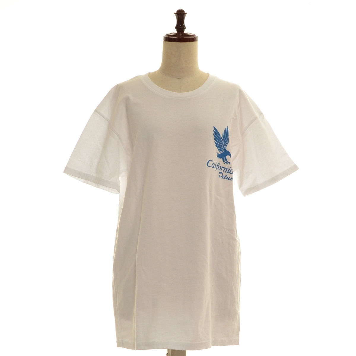 > ■440262 CALUX キャラクス ■Tシャツ 半袖 丸首 クルーネック AMERICAN EAGLE CA22-TT サイズF 20SS レディース USA製 ホワイト プリント