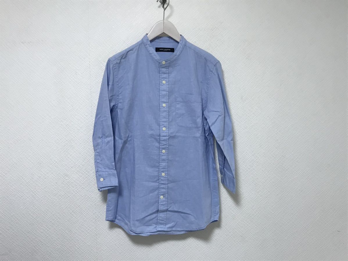 - 美品本物ナノユニバースNANOUNIVERSEコットンスタンドカラー七分袖麻リネンドレス長袖シャツメンズサーフアメカジビジネススーツ青ブルーM