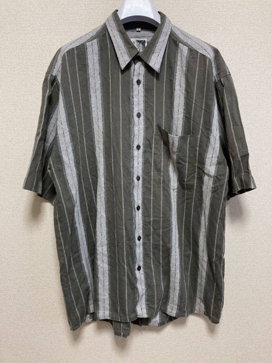 > EURO古着 Classico benetti 半袖シャツ ストライプシャツ 総柄シャツ 44 XL ヨーロッパ古着 グレー系