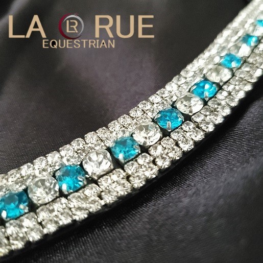 - LA・RUE スワロフスキークリスタル カーブ額革FULL クリスタルブルー&クリア 5ライン 乗馬 馬術