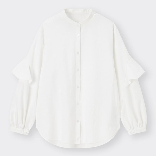 - GU ジーユー ラッフルスリーブブラウス 長袖 Mサイズ オフホワイト