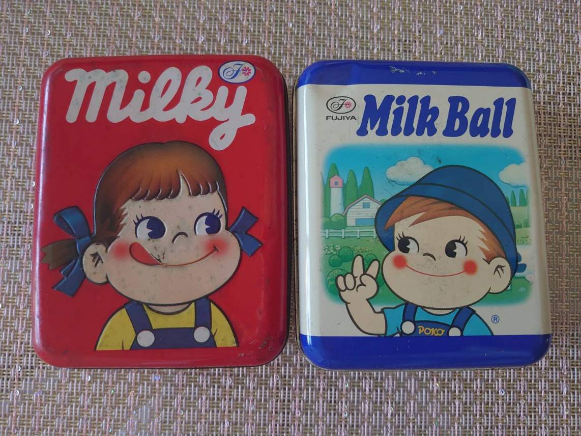 - レトロ 裏面絵柄あり ペコちゃん缶 ミルキー缶