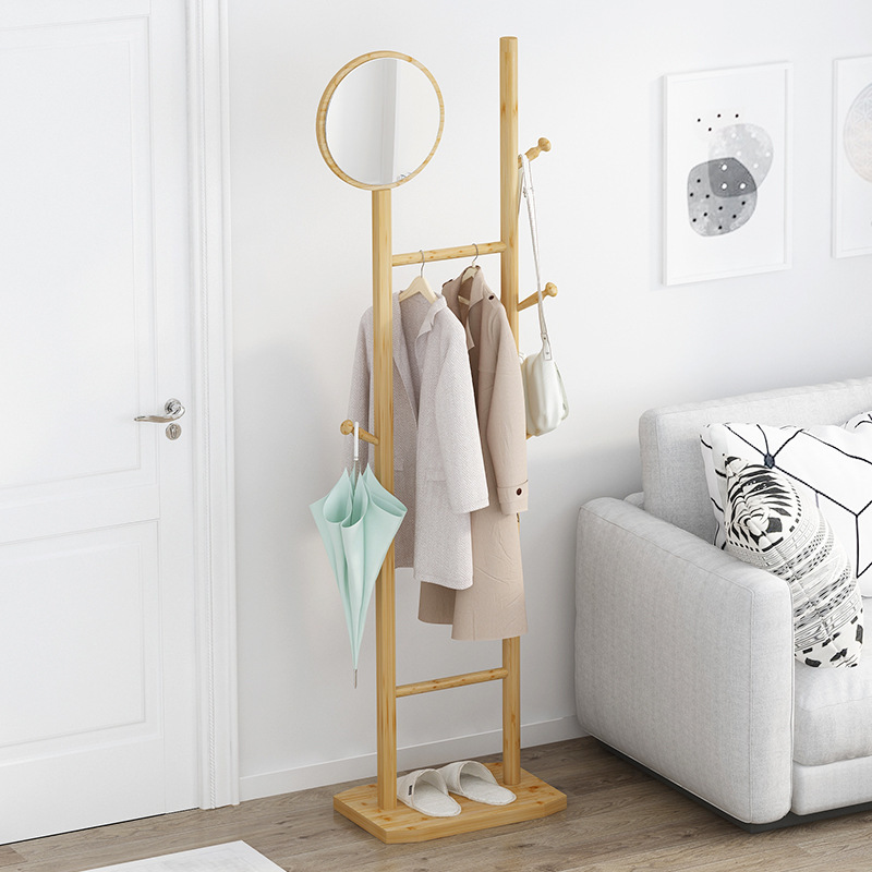 - ハンガーラック メイク ミラー付き ポールハンガー コートハンガー ハンガーポール ラック おしゃれ コート掛け 収納 省スペース ホワイト