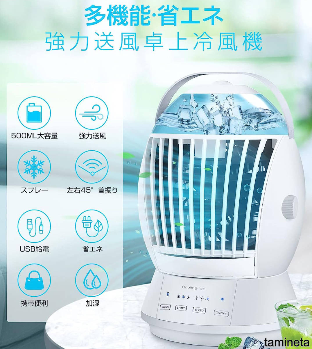 - 冷風機 卓上冷風機 500ml大容量 USB給電 省エネ 扇風機 3段階調節 送風 冷却 加湿 空気浄化 4役 キャンプ 車中泊 エアコン 自宅 勤務先