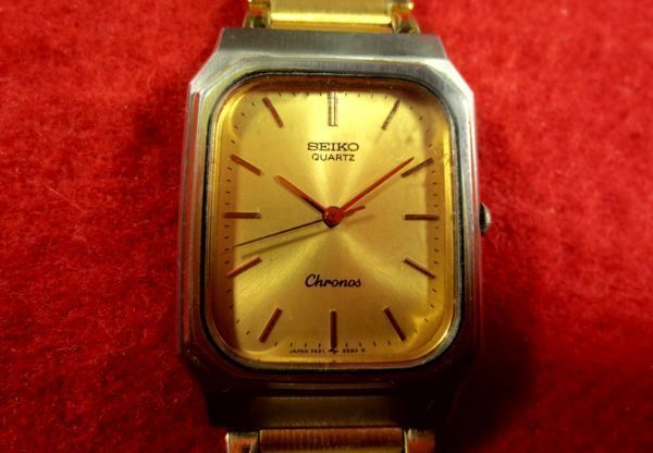 SK5G7)★完動腕時計★セイコー★角形ゴールド★メンズ