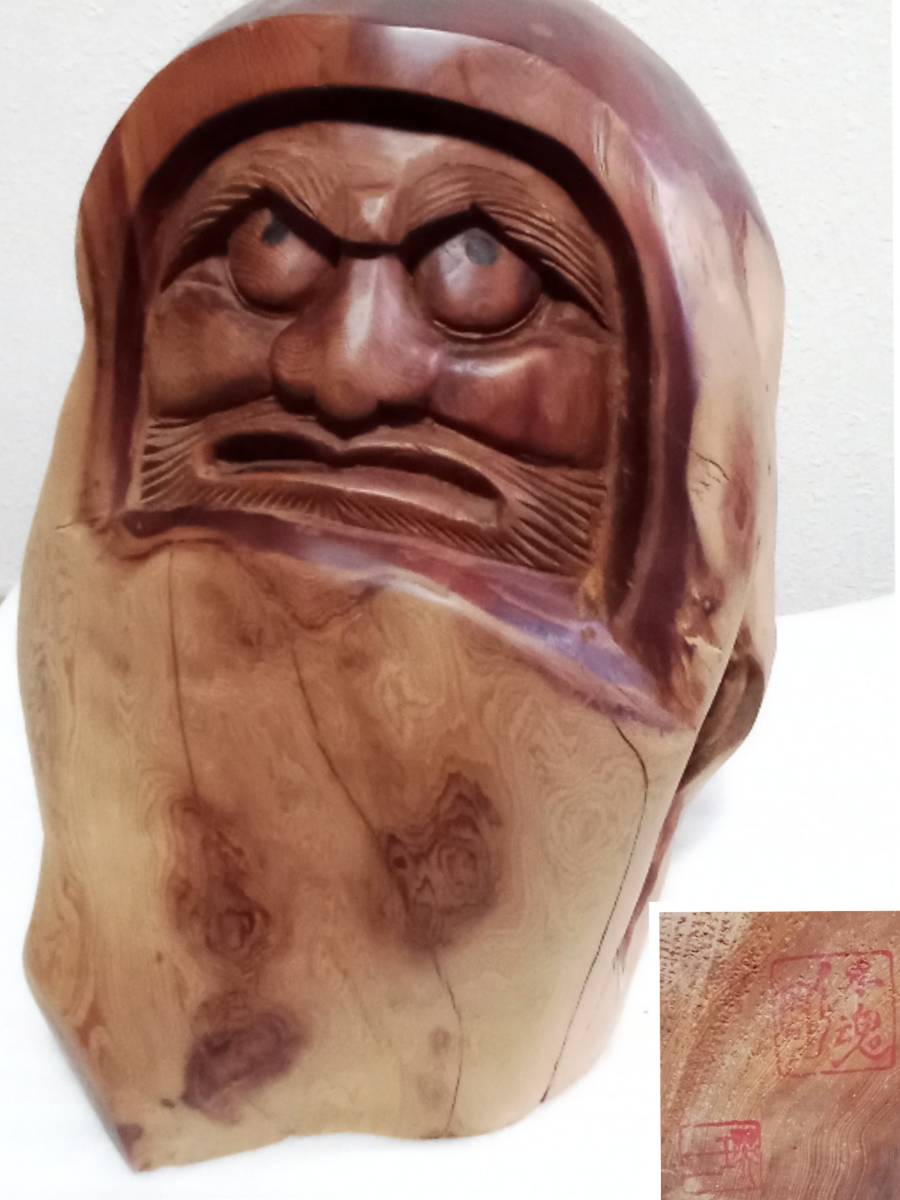 - ★ 蔵出し 作家物 古い木彫りの達磨 木魂彫 在銘 ★ 一刀彫り 七転び八起き 縁起物 置物 達磨大師 菩提達磨