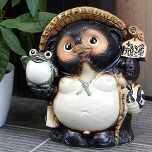 - 信楽焼 9号福蛙持ち開運狸 たぬき タヌキ 狸 開運 縁起物 可愛い 陶器 商売繁盛 ギフト 開店祝 開運 かわいい 蛙 カエル ta-0260