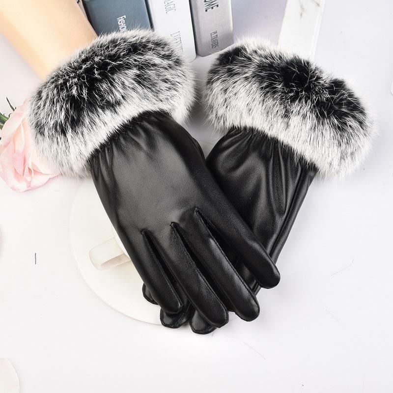 - 【ブラック★S】レディースPUレザー手袋 フェイクファー付き 防寒 ボア 韓国