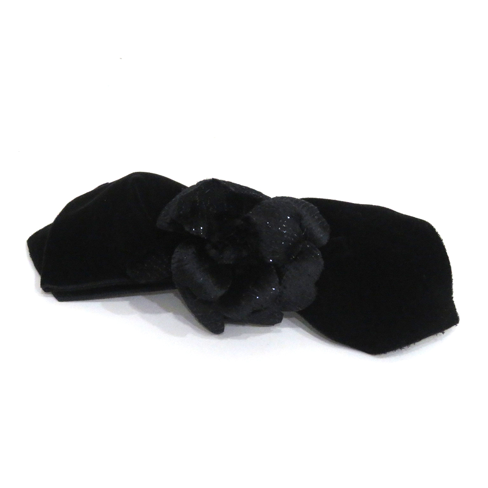 - 中古 美品 シャネル 小物 バレッタ カメリア リボン ABランク ブラック ベロア サテン レディース CHANEL【送料無料】【西神店】