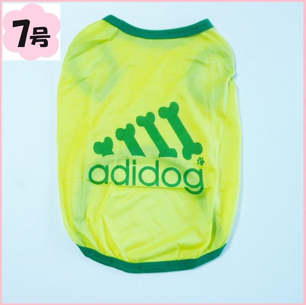 - 7号★送料無料・ネコポス便★中型犬(S)メッシュTシャツ adidog (黄×緑)