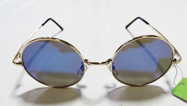- ゴールドメタル丸眼鏡サングラス青ブルーミラーレンズ3364
