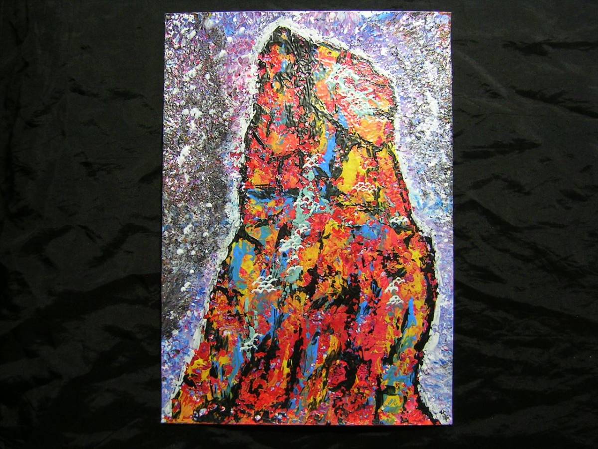 - 絵画、絵、アート、Art、芸術、藝術、手描きイラスト、肉筆、インテリア、特殊加工、風景画、岩、真作、水雲彩鶴 ※額縁に入れて発送します