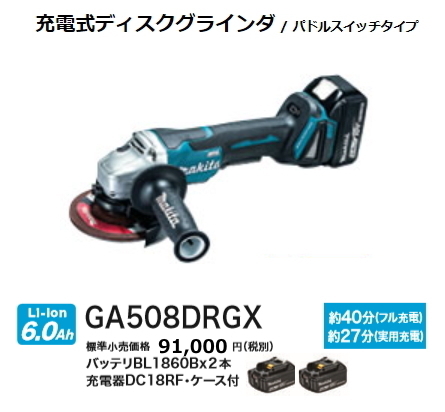 - マキタ 125mm 充電式 ディスクグラインダ GA508DRGX 18V 6.0Ah 新品