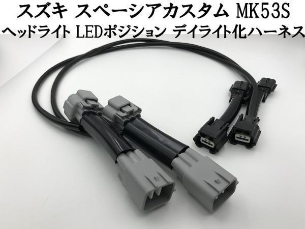 > 【スペーシアカスタム MK53S デイライト化 ハーネス】 LED ヘッドライト ポジション 常時点灯化 検) カスタム 防水 純正 国産