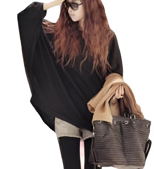 - 新7-2.ポンチョトップスドルマン 袖ゆったり 大人 綺麗め 無地 黒 F