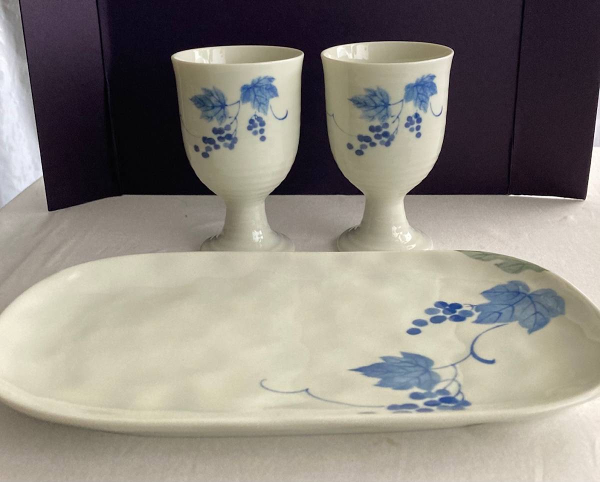 - 未使用 陶器製:ワインカップ2客 &プレート 1023