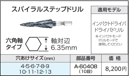 > マキタ スパイラルステップドリル 4~13mm A-60408 六角軸タイプ 新品