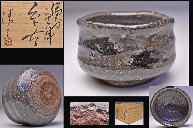 - 川上清美 ★ 備前唐津 ぐい呑 ★ 共箱 ★ 備前土で絵唐津を造形した夢の様な逸品 ★ 酒器 ★