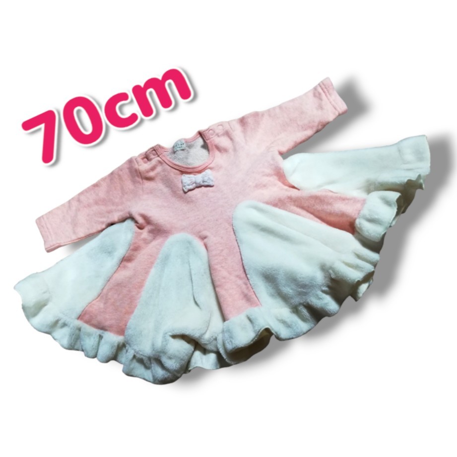 - 【大特価】ワンピース ピンク もこもこ 冬 女の子 ベビー 子供服 70cm 長袖