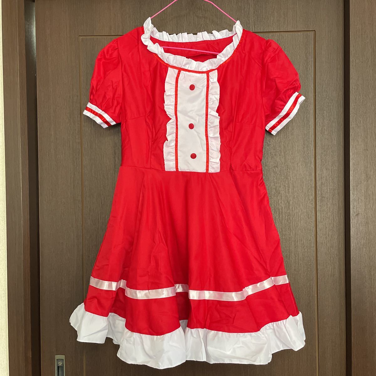 - コスプレ コスチューム ハロウィン メイド風ワンピース 半袖ワンピース 赤