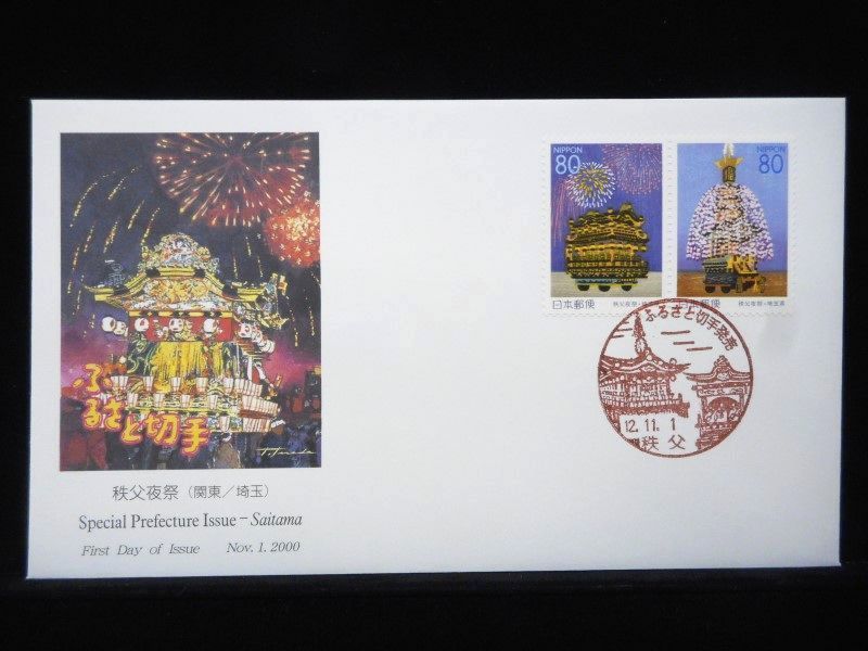 - ふるさと切手 秩父夜祭 2種連刷 2000年11月1日 秩父 初日カバー FDC 日本切手 M-832