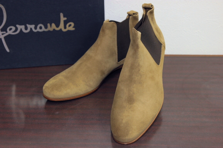 - 未使用 FERRANTE (フェランテ) JUST カーフ スエード サイドゴア チェルシー ブーツ / 6.5 / サンドベージュ / 紳士靴 / 革靴 / イタリア製