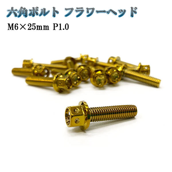 > M6 ボルト P1.0 ねじ長さ 25mm フランジボルト 六角 ステンレス 車 バイク 汎用 外装 ドレスアップ ゴールドカラー