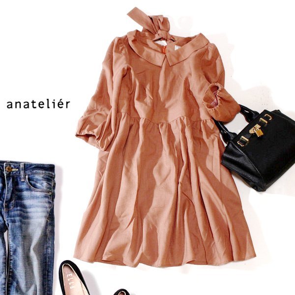 - ☆☆ 美品 anatelier アナトリエ ☆☆ 大人可愛い シボ・スーツ生地 ウール混紡 ワンピース 36号 S 春 秋 合服 23D09